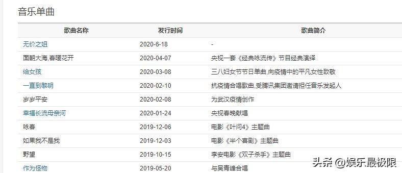 4月份的时候,她发布了单曲《面朝大海,春暖花开》,为疫情合集的武汉加油喝彩!