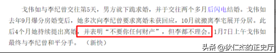 或许出于对戈伟如的愧疚和留恋,李纪曾给出10个亿的赡养费;