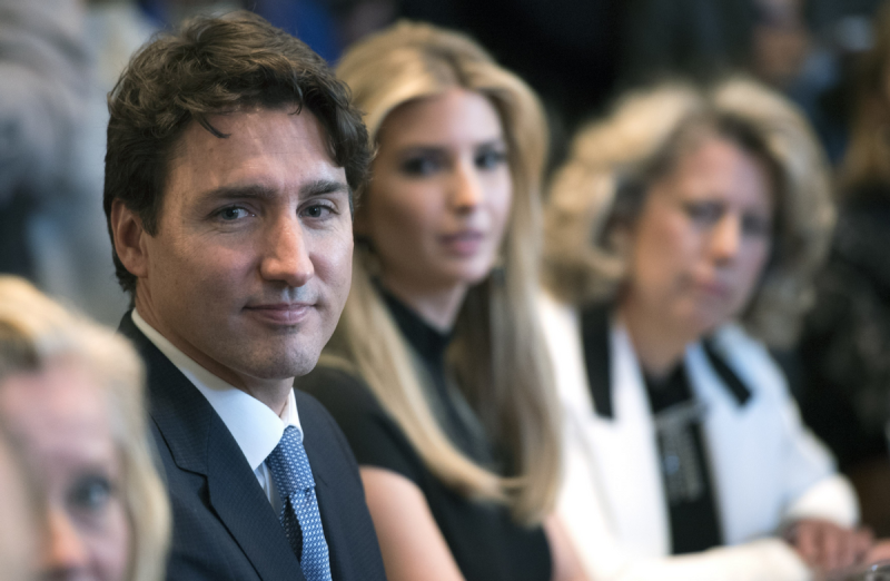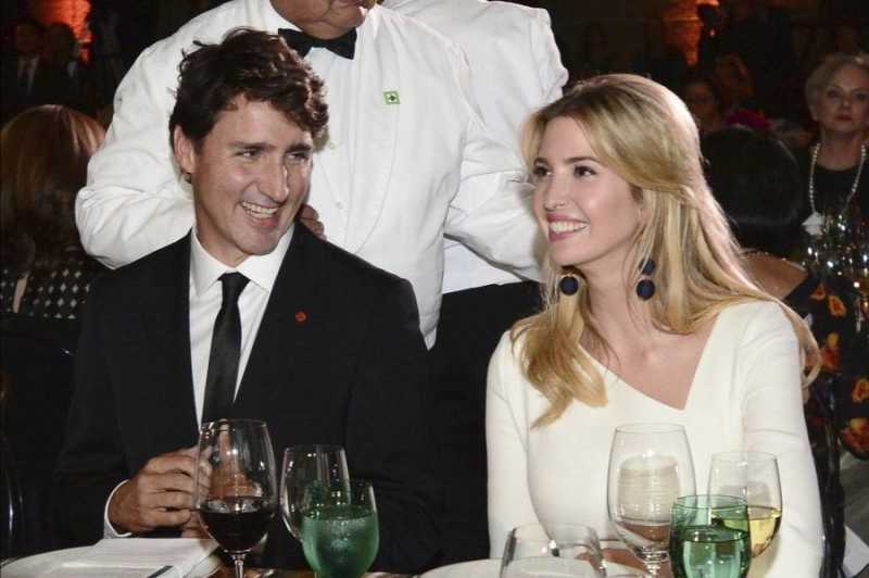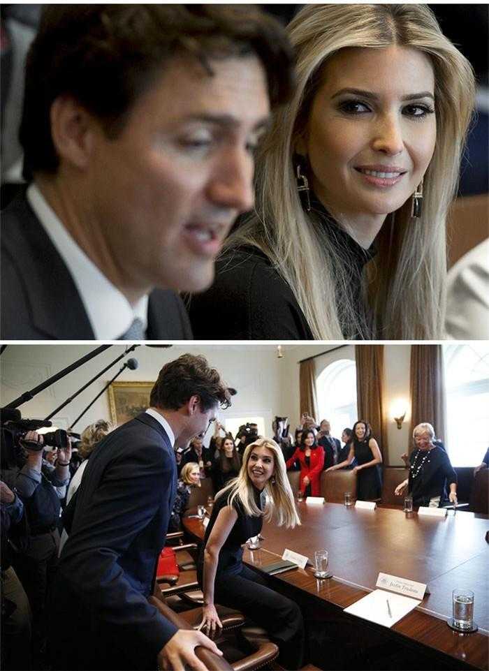 那是伊万卡与特鲁多的第一次同框,特鲁多当时刚好访问美国,顺道参加了白宫与女性商业领袖的会晤会议。