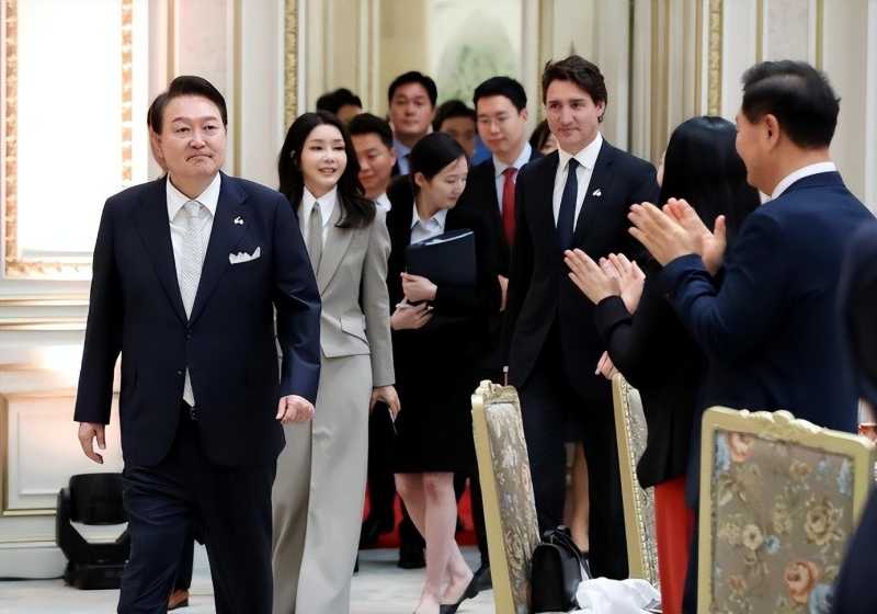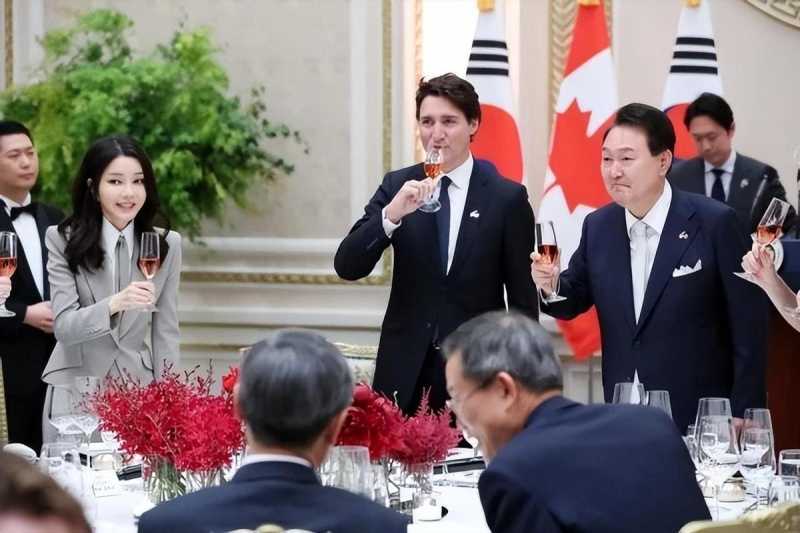 就在前不久,特鲁多访问韩国,尹锡悦带着自己的颜值不老的娇妻,设宴为他接风。