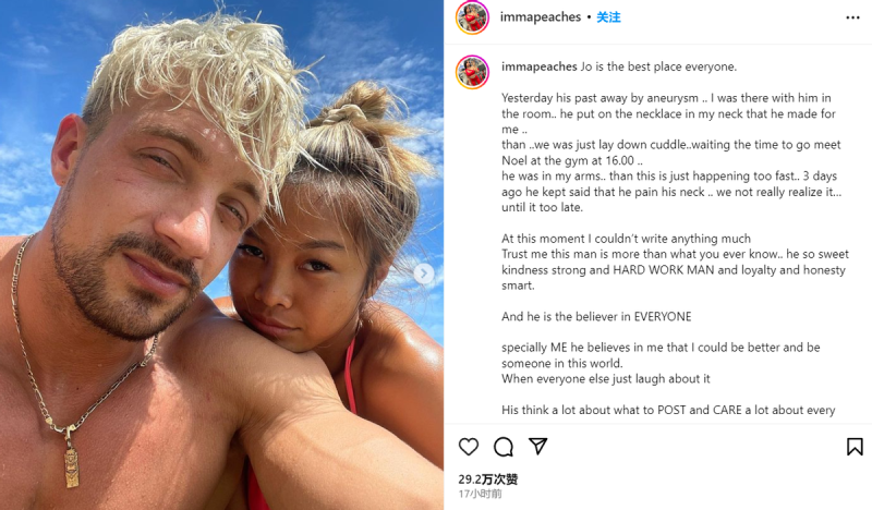 拉丝哥的女朋友尼查,发文透露了他的死因——动脉瘤。
