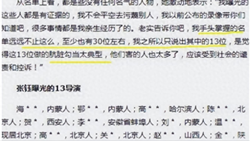 然而,令人感兴趣的是,张钰并没有一次性说完话,而是先整理出了13个导演和制片人的名称。
