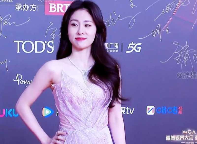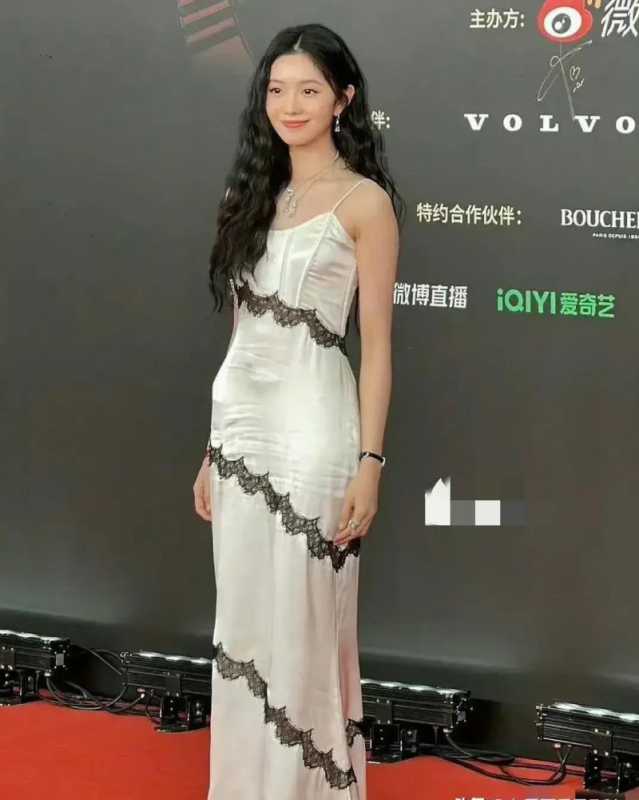 那条白色连衣裙本是想要展现出一种纯洁高雅的感觉,但过多的装饰反而让人感觉过于繁复,缺少了该有的高贵与尊重。更何况,马伊俐的站姿也显得有些不自在,她那略微歪斜的肩膀,