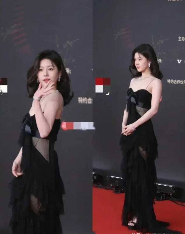 让人不禁猜测她是否在红毯上感到了哪怕一丝丝的不自信。李一桐则是另一回事了。她的着装无疑是对自身优雅气质的一次完美表达。深V的设计巧妙地展示了她的颈部线条,亮片的点缀在灯光下熠熠生辉,
