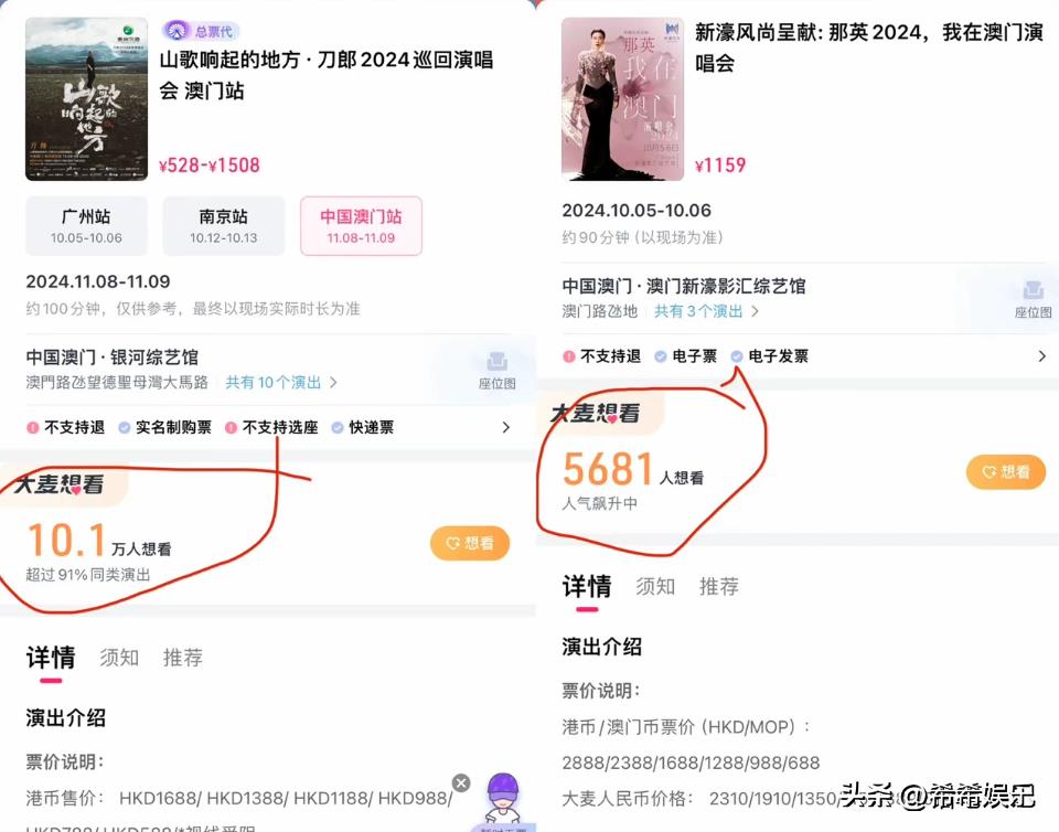 更有甚者,将那英的这场演唱会,与同一天在广州举办的刀郎演唱会进行对比,刀郎,这位曾经红遍大江南北的“草根歌手”,近年来鲜少出现在公众视野中,他的这次演唱会,却出乎意料地火爆,门票早早售罄,甚至出现了黄牛党高价倒票的现象