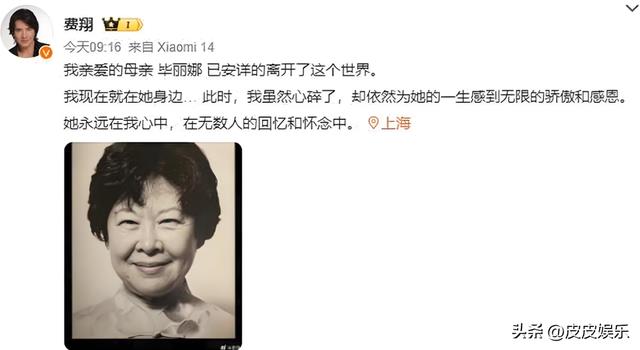 原来早在24年5月,费翔的母亲毕丽娜就已永远的离开了他。