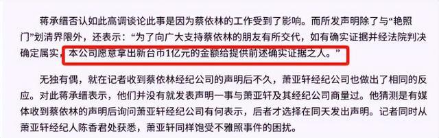 萧亚轩那会儿和经纪公司都急了,第一时间发声明否认,甚至放狠话说愿意拿出一个亿新台币来证明清白。这种正面刚的姿态,在那个人人唯恐避之不及的舆论场里,算是极罕见的。