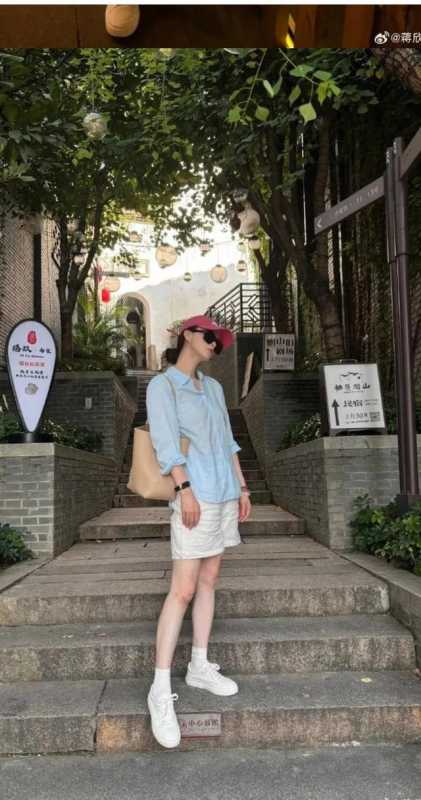 那是8月8日,福州烟台山,阳光透过树叶洒在蜿蜒的山路上。蒋欣一身简单的旧衬衫,素颜朝天,脸上未施粉黛,豹纹眼镜随意地架在鼻梁上,整个人散发着一种闲适与自在。她像是一位普通的游客,漫步在山林间,时不时停下脚步,欣赏着沿途的风景,还兴致勃勃地拿出手机,记录下眼前的美好,一口气晒出18张游客照,照片里的她笑容灿烂,宛如未经世事的少女,仿佛暂时忘却了娱乐圈的喧嚣与纷扰。