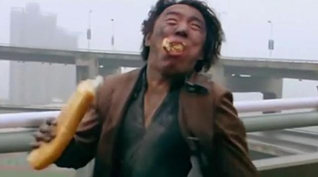 在重庆40度的高温里,他叼着面包狂奔的镜头成了经典;为了拍好下水道戏份,毫不犹豫跳进腐臭的污水。