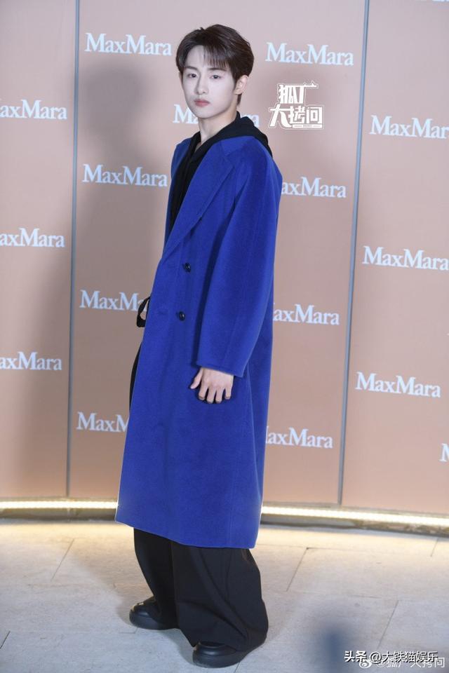 黑色的阔腿裤搭配宝蓝色的大衣,看脸很秀气,180+的个头也被服装衬得很瘦小。