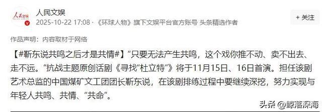 “名不正则言不顺。”2025年10月22日,《人民日报》一则话剧报道悄然将“演员靳东”改为“中国煤矿文工团团长靳东”。这七字之差,比当年他演《伪装者》明楼时的眼神更犀利——陈道明2003年说的“演员要沉心打磨”,如今在靳东身上应验了!可这称呼变更,是官方认证的“身份升级”,还是给浮躁娱乐圈的一记警钟?咱们得掰扯掰扯——毕竟,不是所有演员都能扛起“团长”二字背后的责任。