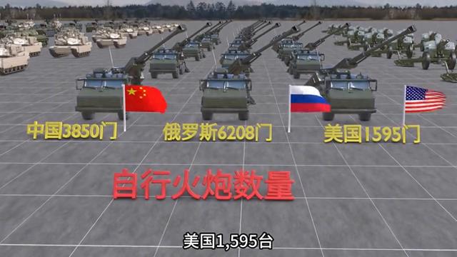 ·自行火炮数量:中国3850台,俄罗斯6208台,美国1595台。