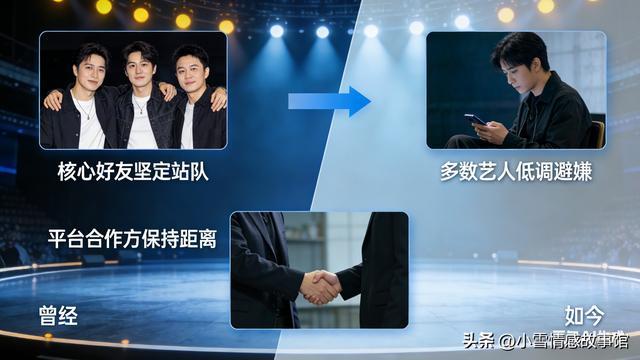 可转折来得猝不及防。伴随争议风波,他的人缘陷入巨大困境:圈内呈现明显两极分化。核心好友坚定站队,可更多艺人选择低调避嫌,公开互动锐减;部分平台与合作方出于风险考量保持距离,曾经热闹的综艺朋友圈,如今变得安静又微妙。