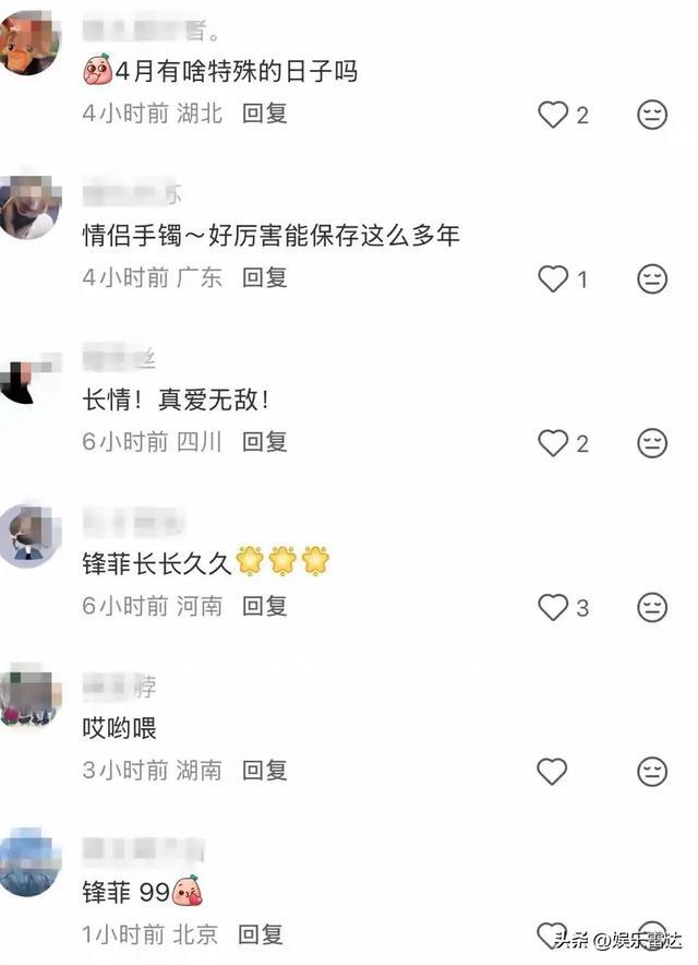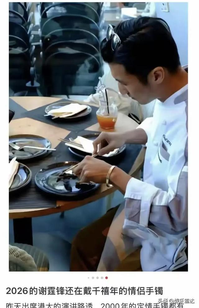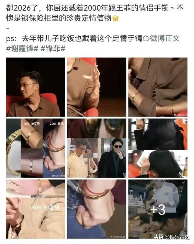 哇不扒的时候没发觉,一顿一扒居然被吓到,这只手镯根本就不是那种最近才购置的新款样式。它是谢霆锋跟王菲在2000年公开二者恋情之际就已然戴着的那么一只,仔细计算下来已然整整过去了二十六年,相比不少网友的年龄还要大呢。