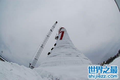 这个“世界上最高的女雪人”在美国缅因州,高度达到122英尺。堆如此高的雪人,必须启用很多建筑工地才能见到的机械设备,工程量相当的浩大。