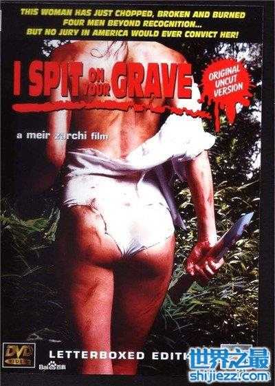 《我唾弃你的坟墓》是一部具有争议的电影。影片在1974年10月1日上映,为世界十大禁片之一,这可能是被最多国家禁演的电影。也是最遭非议、最臭名昭着的一部电影。故事讲述一个单身女人在渡假时遭到四个男人的强暴后,痛定思痛,用不同的方式将四个男人以不同的方式逐一杀死,以出心头的那口恶气。该片之所以入选,完全是因为它符合“最具争议和最令人触目惊心”两个标准。特别是近20分钟的强暴场面和女人杀死男人的不同方式,在70年代的电影作品中算是非常触目惊心的。