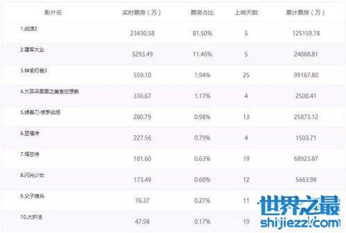 战狼票房真实结果是多少?我想在《战狼2》上映之前,大家可能知道它会火,没想到的是,它竟然火得如此奇葩和一发不可收拾……之所以说奇葩,是因为它首日上映,票房并没有过亿,但是上映第四天,单日居然破3亿!而上映的第五天,单日竟然还能过2亿,虽然这是暑期档,但也稍稍疯狂了些~