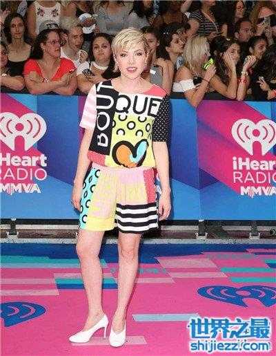大家印象里的蹲妹Carly Rae Jepsen,大概是个什么样子呢?反正小堂印象里的蹲妹一直是酱紫的,比较乖很亲民的妹子感觉。再后来变成这个样子了,但也能认得出吧~可是最近蹲妹为了转型,直接对外形大改了一番。昨天她出席了iHeartRadioMuchmusic Video Awards,变成了酱紫..说实话真的是确认了好两回,因为跟印象里的差太多了。年龄像暴涨了十几岁...也可能是穿搭不对劲的缘故,想把造型师拉出去暴打一圈。