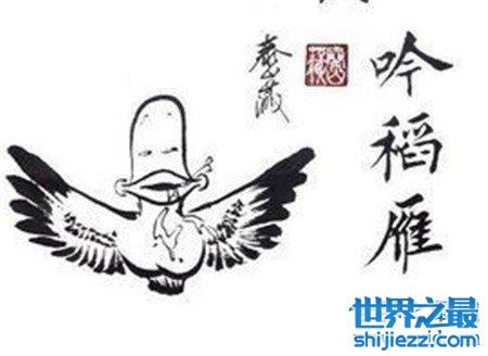 网友杜撰网络十大神兽之一,传说清朝康熙年间,突然一只大雁俯冲而下把整块稻田都压坏,形成了稻田怪圈,使当地农民得上一种怪病。农田里的女人很快变老,男人因为女人的变老,也离开了此地,是以百姓苦不堪言。最后官府下令捕杀吟稻雁,怪病才得以平息下来,但是吟稻雁因为过度捕杀导致灭绝,谡败与甄姬之手( 甄姬玩家总摸到红牌,就是月经手)而得名。