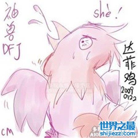 达菲鸡,网络十大神兽之一.达菲鸡传说是生长在南美洲的奇异物种,喜欢运动,运动时身体常常抽搐,最后从口中射出一种乳白色粘液来对异性示爱,因为印第安人的大量捕杀,现已灭绝