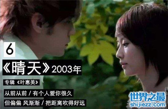 《晴天》是首浪漫的少年情歌,有风花雪月,更多的是怅然若失,很散文诗式的情怀,用周杰伦的方式演绎,就更带点伤感。这首歌将回忆的思绪充分放大,校园时代的青涩,甜美纯真的爱情,桀骜不驯的叛逆,在这首歌里全都有体现。歌词中出彩的“re si duo si”的日本发音,恰到好处的衔接,听上去简直如一个美丽而忧伤的青春爱情故事,让人有掉泪的冲动。MV中的大提琴演奏将旋律升华到艺术的气质,最后的rap更是增加了周杰伦独特的情歌特色。