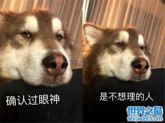 “确认过眼神”其实是林俊杰的一首歌里面的“确认过眼神,我遇上对的人”,但被网友用来适用于各种类似于段子一样的地方,比如和狗狗对视一下,一下子来配上这首歌的高潮,想不笑都难。