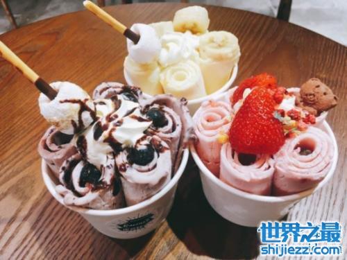 以前我们大家应还都吃过蛋卷,蛋卷的味道可以说是很多人童年的回忆,很多人也都非常爱吃蛋卷,近些时间出现了一款冰淇淋卷,这款冰淇淋的造型看上去就和蛋卷似的,这是由冰淇淋卷在一块放到杯子里做成的,这款冰淇淋的口感也是很棒的。