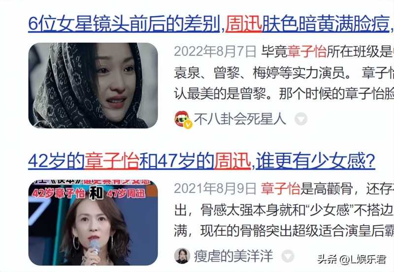 影后章子怡和周迅,四十多岁了,不仅要被拿来和年轻演员pk状态,还要互拼“少女感”。