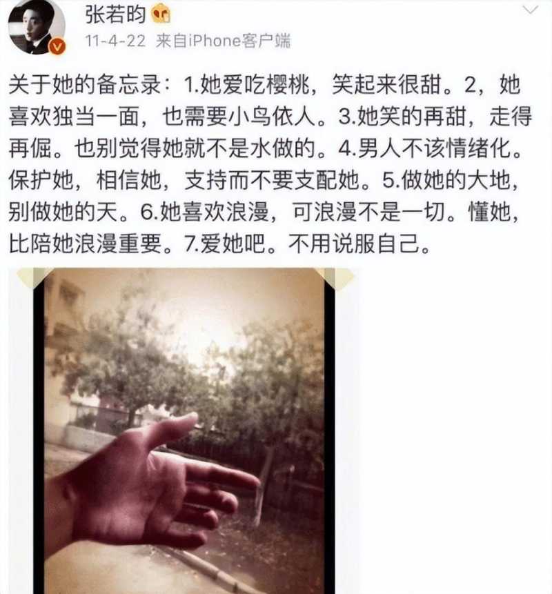 比如2011年,张若昀就曾经在微博上面发布了一条关于唐艺昕的备忘录,说她爱吃樱桃。