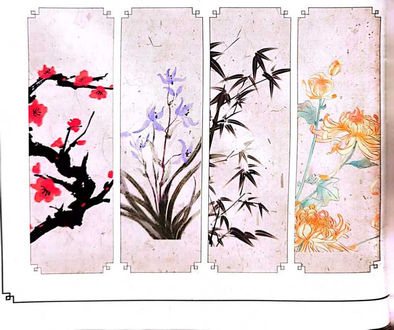 梅、兰、竹、菊作为花中四君子,是中绘画和诗词歌赋中的传统题材,表现了文人们对于美好品格的一种向往与追求,还体现着中华民族的文化精神,是一种君子人格的象征和隐喻。