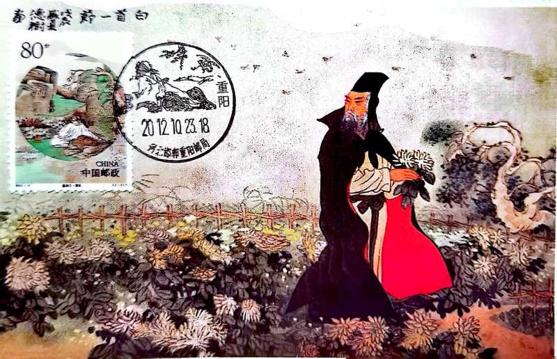 从野生到人工培育,从药用到观赏,从品种单调到千姿百态,从本土到全球……菊花的发展史也是一部文明的演进史,在与历史传统的互荣共生中积淀下厚重而独特的菊文化。菊花与中华民族传统文化有着深厚渊源,对传统民俗的形成与演进有着深远影响,重阳节的菊花民俗是其中最典型的代表。早在汉代,重阳节赏菊习俗就初步形成;汉魏时期,酿制菊花酒已非常盛行;到了唐宋,菊之民俗最是盛举,每逢重阳,赏菊花、饮菊茶、喝菊酒、食菊糕、吟菊诗、插菊枝、挂菊灯等活动蔚然成风,无论宫廷还是市井都洋溢着浓厚的菊文化氛围。孟浩然“待到重阳日,还来就菊花”的邀约正是赏菊习俗的生动写照,中国邮政发行的2003-18《重阳节》特种邮票也专门反映了重阳赏菊习俗(图3);而古典文学名著《红楼梦》中则留下了关于重阳插菊习俗的记载,在第40回中写道重阳节这一天,大观园里的女人们皆戴菊应俗,且房中还要插菊。说到插花,这也是一种源远流长的传统民俗,从汉代便开始流行,是文人雅士们追捧的一种高雅生活方式,苏辙《戏题菊花》中“春初种菊助盘蔬,秋晚开花插满壶”说的就是这一习俗,人们通过插花以花明志,体现人生追求和生活品味。作为"花中四君子"之一的菊花,在中国古代插花艺术中占有重要席位,2007-14《孔融让梨》特种邮票上的插花中便可见菊花的身姿。