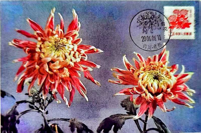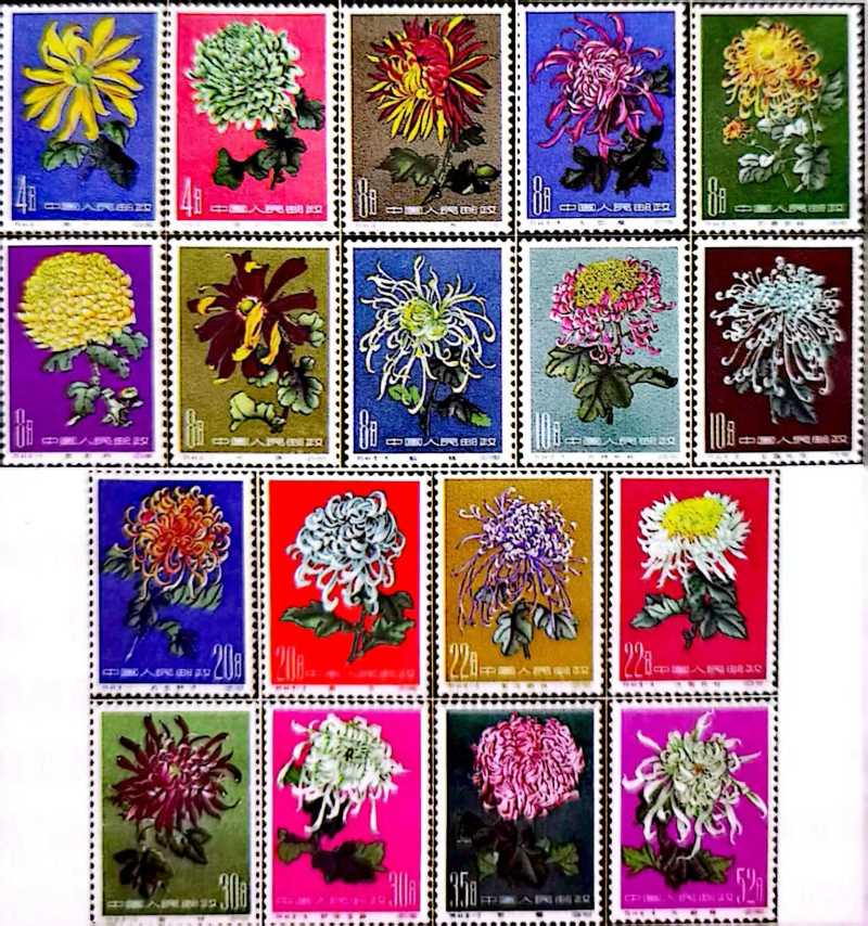1000多年前,中国菊花开始走向世界,七八世纪传入朝鲜、日本,17世纪末荷兰商人将中国菊花引入欧洲,19世纪中期引入北美,此后中国菊花遍及全世界,成为中国献给世界花卉园艺的一朵奇葩。时至今日,菊花已发展成为世界上品种最多、造型最丰富的观赏植物,是国际花卉市场四大切花之一,在中国跻身十大传统名花之列。1958年9月25日,我国发行普10《花卉》普通邮票,"菊花"位列其中(图1),这也是我国首枚菊花题材邮票;1960年至1961年发行的特44《菊花》邮票则集中展示了“黄十八”“绿牡丹”“如意金钩”“芙蓉托挂”“赤金狮子”等18种我国自主培植的名贵菊花品种,这也是中国邮票发行史上第一套大型花卉邮票,至今仍是经典(图2)。