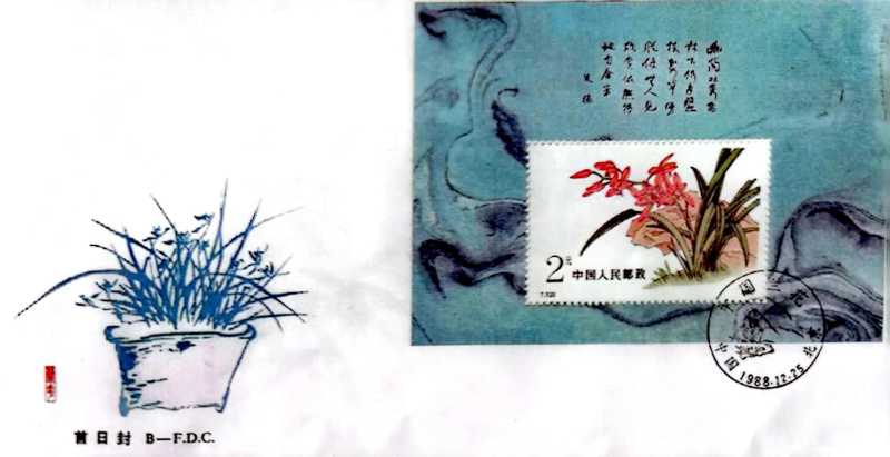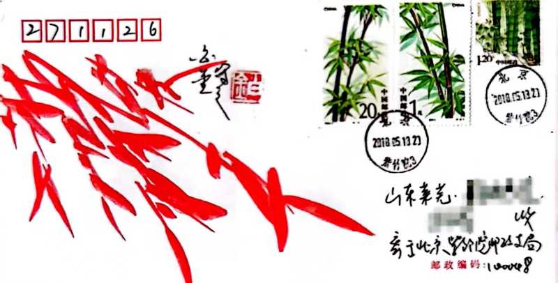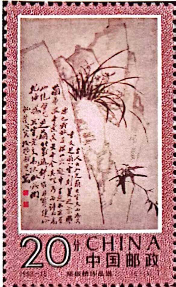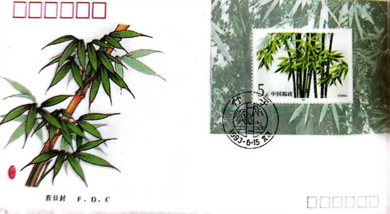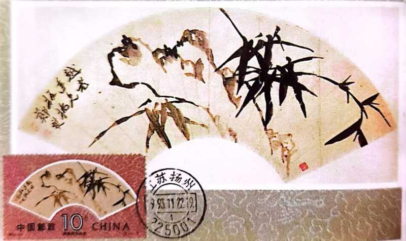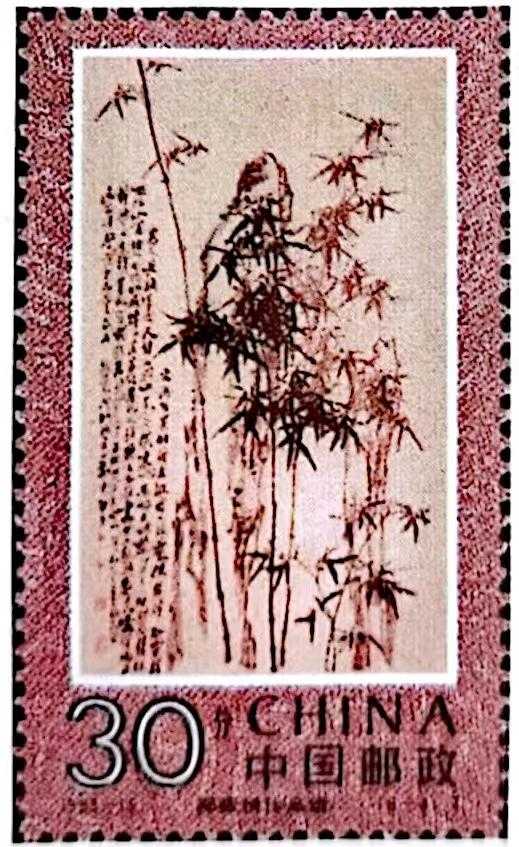 说起爱竹,有两个人羲之第五子王徽之,其平生有一个特别的嗜好,那就是爱竹至痴迷。在其庭院中,处处都种满了各式各样的竹子,空闲之时,散步其中,品赏竹子的美姿,沉醉在竹叶的清香之中。在刘义庆所著的《世说新语》中,曾记载王徽之种竹的故事:王徽之在借住新屋时,便令先种竹再打扫,其因是“何可一日无此君”,后每天几乎都与竹相伴。另一个就是清代的诗画大家郑板桥,他人生中的大部分岁月都一直在画竹,可谓情有独钟,“四十年来画竹枝,日间挥写夜间思”便是其真实的写照。其创作的竹图,多为写意且一气呵成,生活气息十分浓厚,并极富变化之妙。郑板桥作为清代比较有代表性的文人画家,其诗书画世称“三绝”,书法以“板桥体”闻名,且有“咬定青山不放松,立根原在破岩中。千磨万击还坚劲,任尔东西南北风”的优美诗句,而画竹更是成为郑板桥最大的“标签”。在中国邮政发行的1套6枚的1993-15《郑板桥作品选》邮票中,就有2枚为竹画(图9、10),这套邮票还被评为当年的优秀邮票,而获奖纪念张与发行纪念张同样采用了郑板桥创作的竹画。