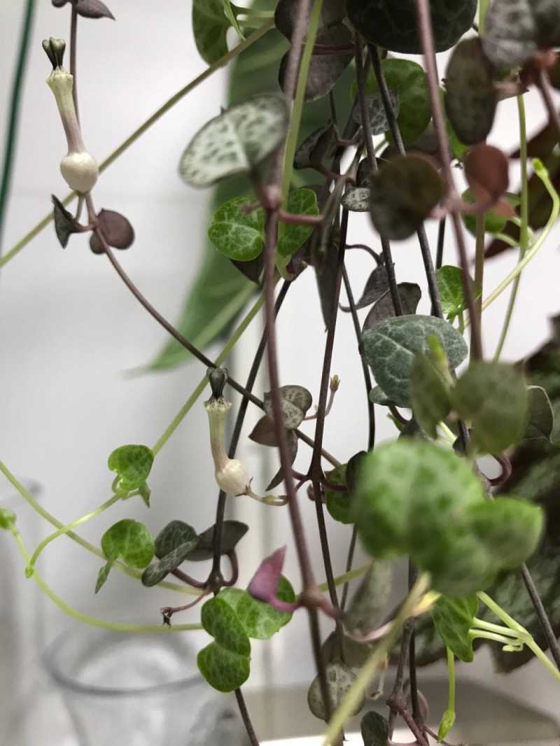 爱之蔓也会开花,花朵是冠状花序,好像筒状的号角,比较独特,灵动有趣。