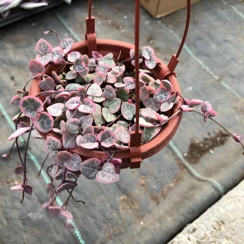 爱之蔓也叫心蔓、吊金钱、蜡花等,它的名字非常浪漫文艺。这种植物原产于南非,肉质的叶片,纹理明显,叶色带点渐变的感觉。从绿褐色到红紫色,肉质的叶片,舒展开来,当作垂盆植物的话,非常精致美观。