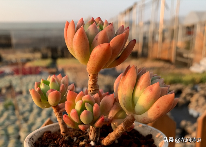 姬胧月的叶片肥厚,非常皮实好养,有句比喻说得好,它的生命力就像野草一样顽强,在各种情况下都能生长,轻轻松松就能爆盆。尤其是养出状态的姬胧月,肥肥胖胖的,鲜艳的颜色,美得像花一样的形状,让人心情瞬间变美!
