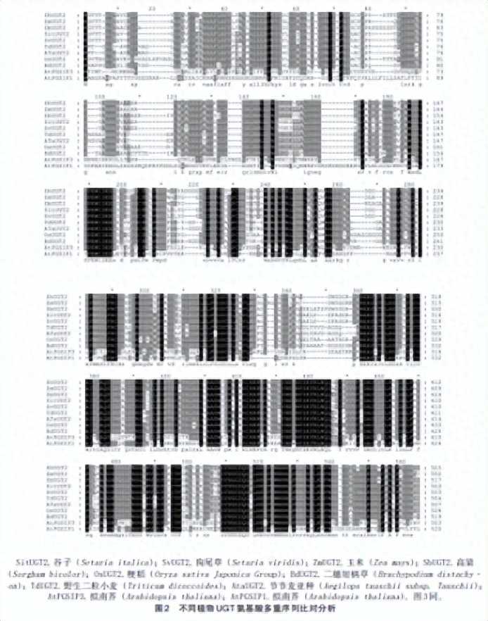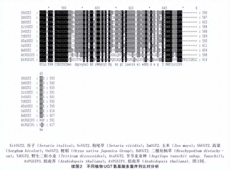 对ShUGT2蛋白进行了氨基酸序列的比较研究,发现该蛋白含有一个含有UDP-glycoprotease的特殊区域(见图5)。