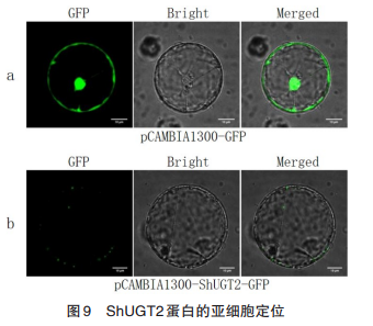 为了进一步阐明这一重要的生理生化机制,我们从甘蔗的转录组测序结果中,获得了1个具有UDP-glycoprotease的UDP-glycoprotease,并对ShUGT2进行了亚细胞定位和蛋白质定位。