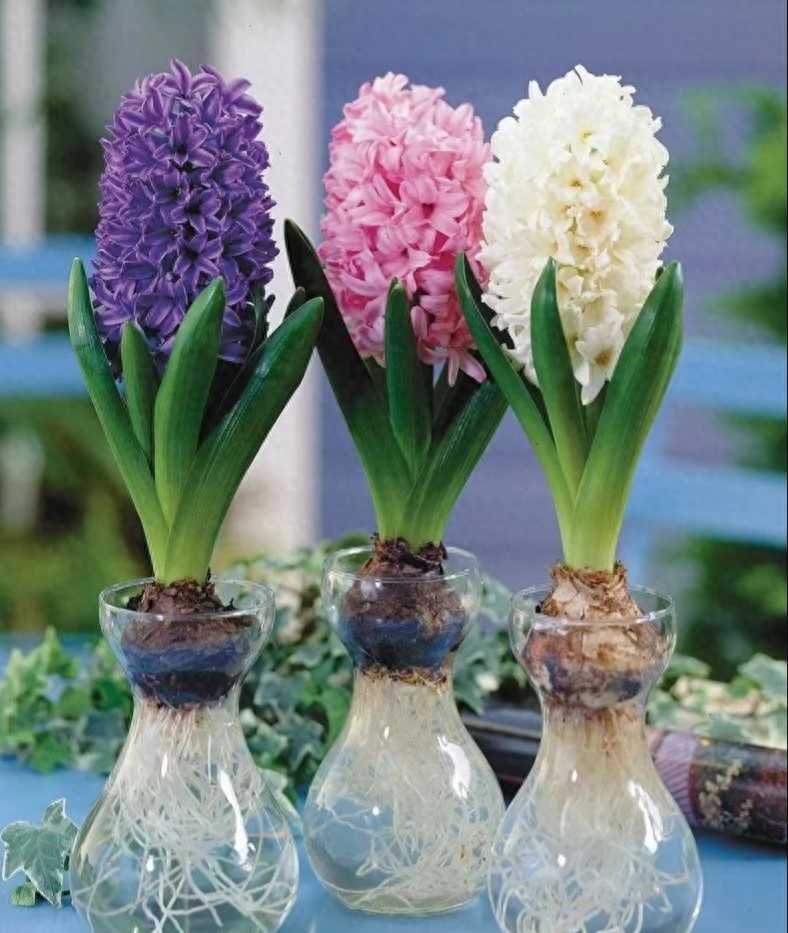 风信子是属于一种球根植物,花店里出售的风信子都是用洁净的玻璃水瓶水培的,不需要用土栽种,这样摆放在家里会显得更加的洁净、干净。