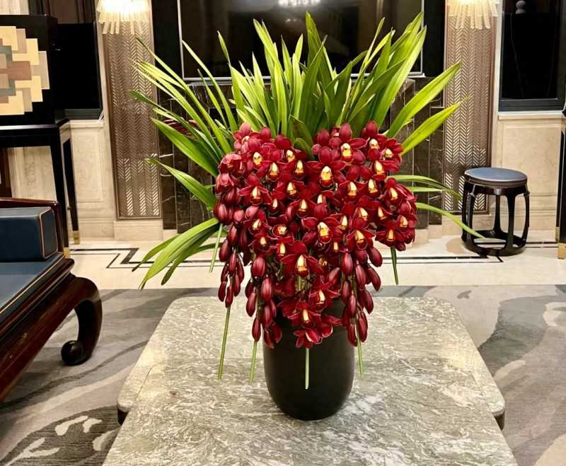 与国兰的含蓄、淡雅不同,大花蕙兰开花硕大,色彩鲜艳,比较张扬、奢华。
