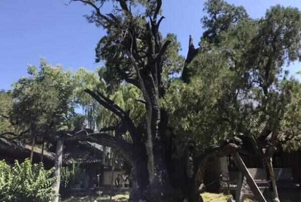 这棵古树位于河南省郑州市登封市嵩阳书院。据说这棵树的名字是汉武帝赐予的。它最早的发芽历史可以追溯到周朝以前。到目前为止,这两棵树分别有12米和20米高,尽管树干的皮肤有些脱落,但树木依然枝叶繁茂,苍劲挺拔。