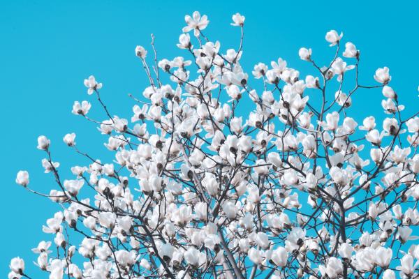 玉兰树每年在2到3月的时候开花,花瓣有着“色白微碧、香味似兰”的特点,在开花的时候没有叶子,因此也被认为是世界十大最美花树之一。
