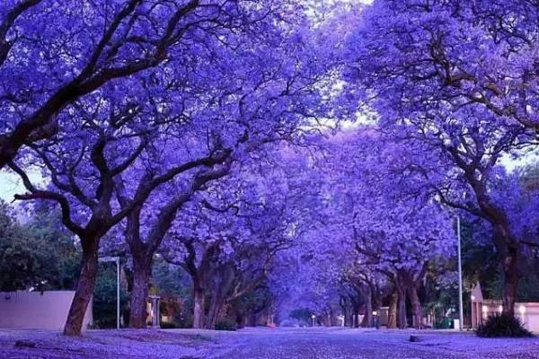 在南美洲生长有一种蓝楹花,它也是世界十大最美花树之一,每当花朵盛开的时候,整个树冠就会被紫蓝色的花朵覆盖,同时它的树形优美,花穗密集且呈波浪状,别样的美丽,更能够体会到大自然的鬼斧神工。