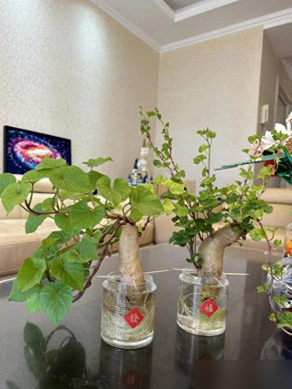 其实最戳人的还是那股“烟火气”。厨房切菜剩下的碎渣,随手往瓶里一插,客厅就多了点绿——这不是“买”来的风景,是从自己的饭桌上“变”出来的,每一片叶子都沾着炒白菜的香气、煮红薯的甜气,比商场里摆的高档盆栽亲切一百倍。
