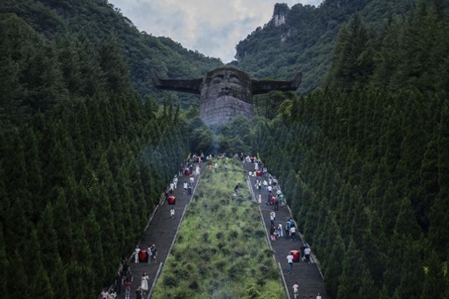 如今,在通往神农顶的必经之路上,群山环抱着国内最大的炎帝祭坛神农坛。地坛有代表最高祭祀规格的九鼎八簋,后壁浮雕生动展现炎帝神农氏的丰功伟绩;243级台阶通向镌刻着“中华始祖”的天坛,坛上是高21米的炎帝神农氏牛首人身像,他庄严肃穆,双目微垂,仿佛仍守护着这片土地。每年农历四月廿六,这里都会举行拜谒大典。