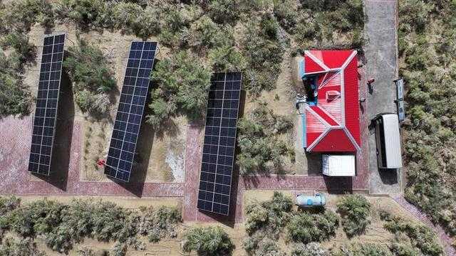 这是2023年8月20日拍摄的中国石油塔里木油田零碳沙漠公路光伏发电站。新华社记者顾煜摄