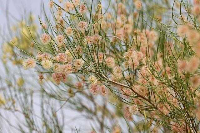 这是5月19日拍摄的和若铁路沿线种植的沙拐枣。新华社记者丁磊摄