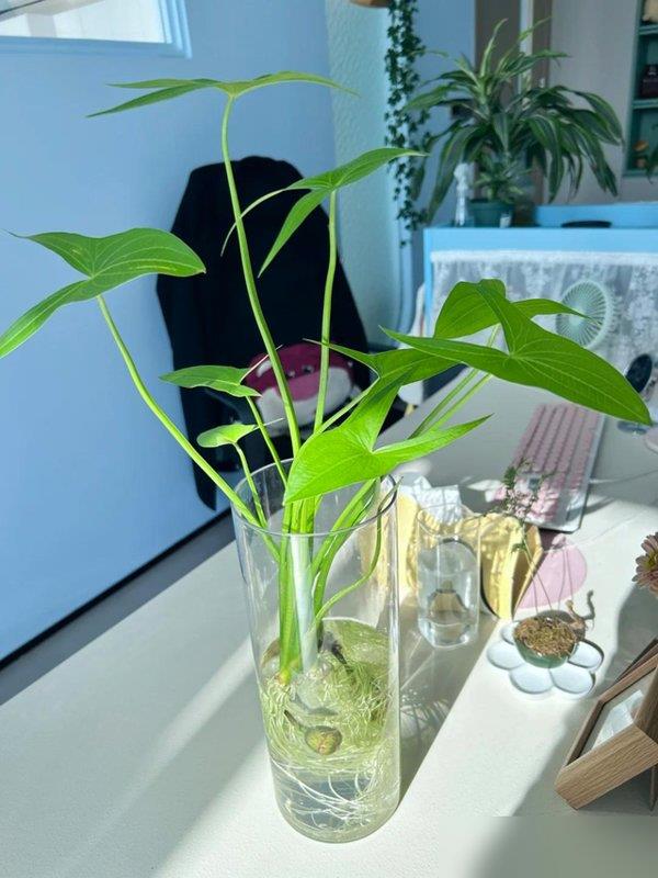 你们有没有过这种“捡漏”经历?之前是不是把发芽的土豆直接扔了?是不是把带芽的红薯头丢进垃圾桶?现在是不是突然想翻冰箱,看看有没有能泡的“边角料”?其实生活里的治愈感从来都不贵:花市几十块的绿植,说不定不如你泡的茨菇耐看;网上买的网红摆件,说不定不如你养的红薯藤有温度。我昨天泡的土豆发芽了,叶子卷卷的像小爱心,早上阳光照过来,叶子上的露珠闪着光,盯着看五分钟,比刷半小时短视频还让人安心——毕竟这是我亲手“救”回来的小生命,每一片叶子都是慢慢长出来的,那种“等着它长大”的期待感,比买现成的花更让人开心。