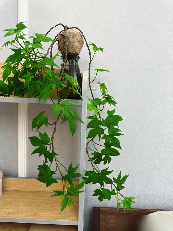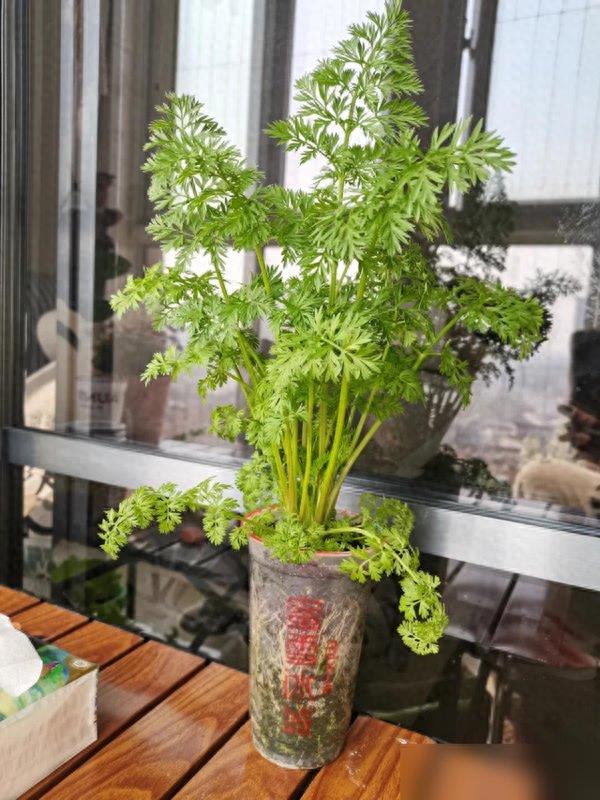 后来我试着“开发”更多菜篮子里的“绿植原料”:红薯头带芽泡水里,没俩星期就窜出一长串绿叶子,像瀑布似的垂下来,挂在阳台栏杆上,风一吹就晃,比买的绿萝还带劲;芋头更有意思,带芽的块茎泡进去,叶子长得比我手还大,像热带小芭蕉,放客厅墙角,亲戚来家都问“这盆‘热带植物’在哪买的”;最惊喜的是胡萝卜头——切下来带点根须,泡在小碗里居然长出细叶子,像迷你雪松林,放在书桌前,写东西的时候看一眼,比摆个塑料摆件还治愈。