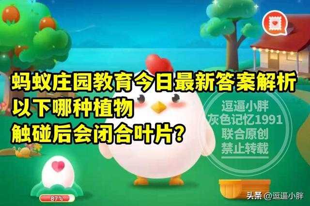 蚂蚁庄园教育:以下哪种植物触碰后会闭合叶片?